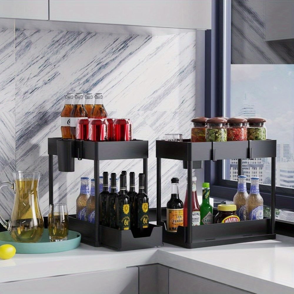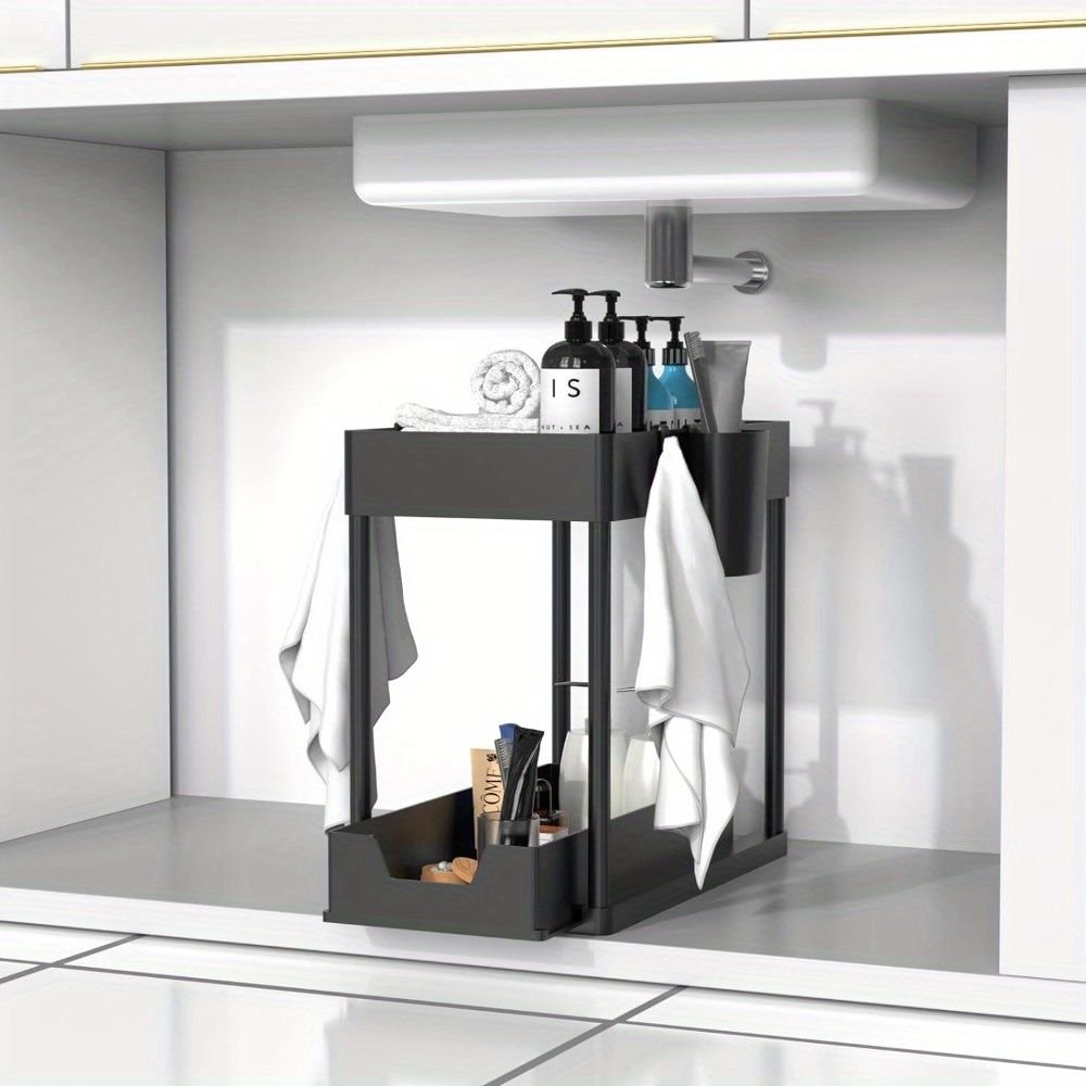 Home > 2 Tier Under Sink Organizer, Bathroom Cabinet Organizers and Storage Shelf, 2 Tier Sliding Drawer for Hooks Hanging Cup