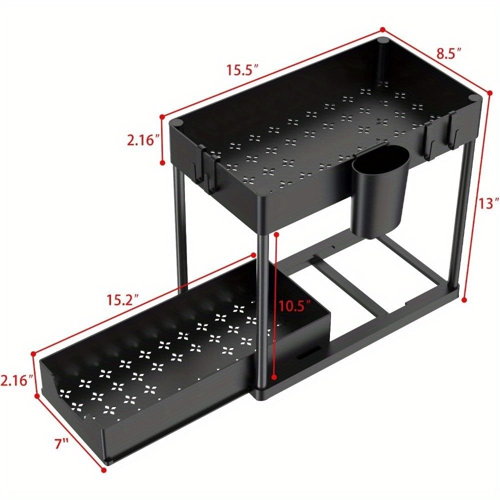 2 Tier Under Sink Organizer, Bathroom Cabinet Organizers and Storage Shelf, 2 Tier Sliding Drawer for Hooks Hanging Cup