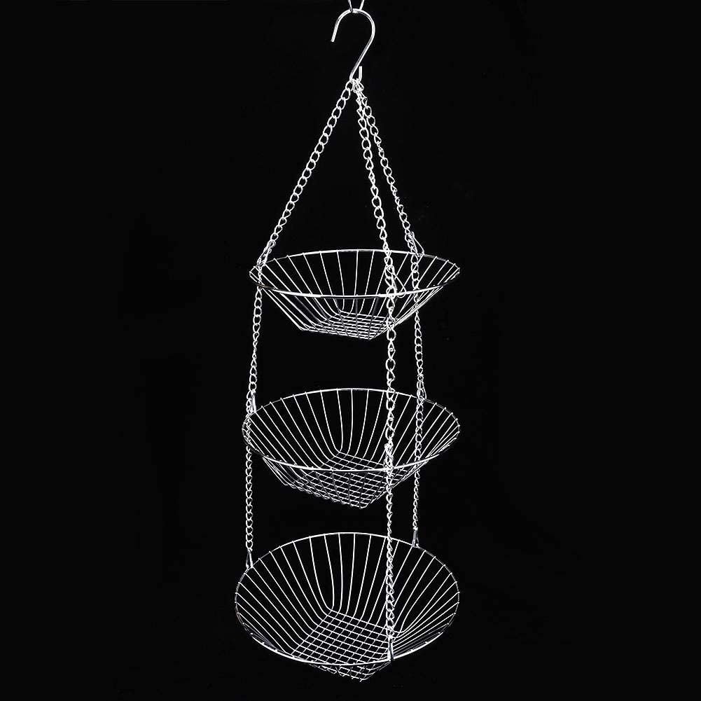 2.3-TIER BASKET STAND: The 3-tier kitchen basket stand is the perfect solution for kitchen storage. Simply store fruit & Vegetables, kitchen utensils, towels, cleaning products and more in the kitchen hanging storage basket.