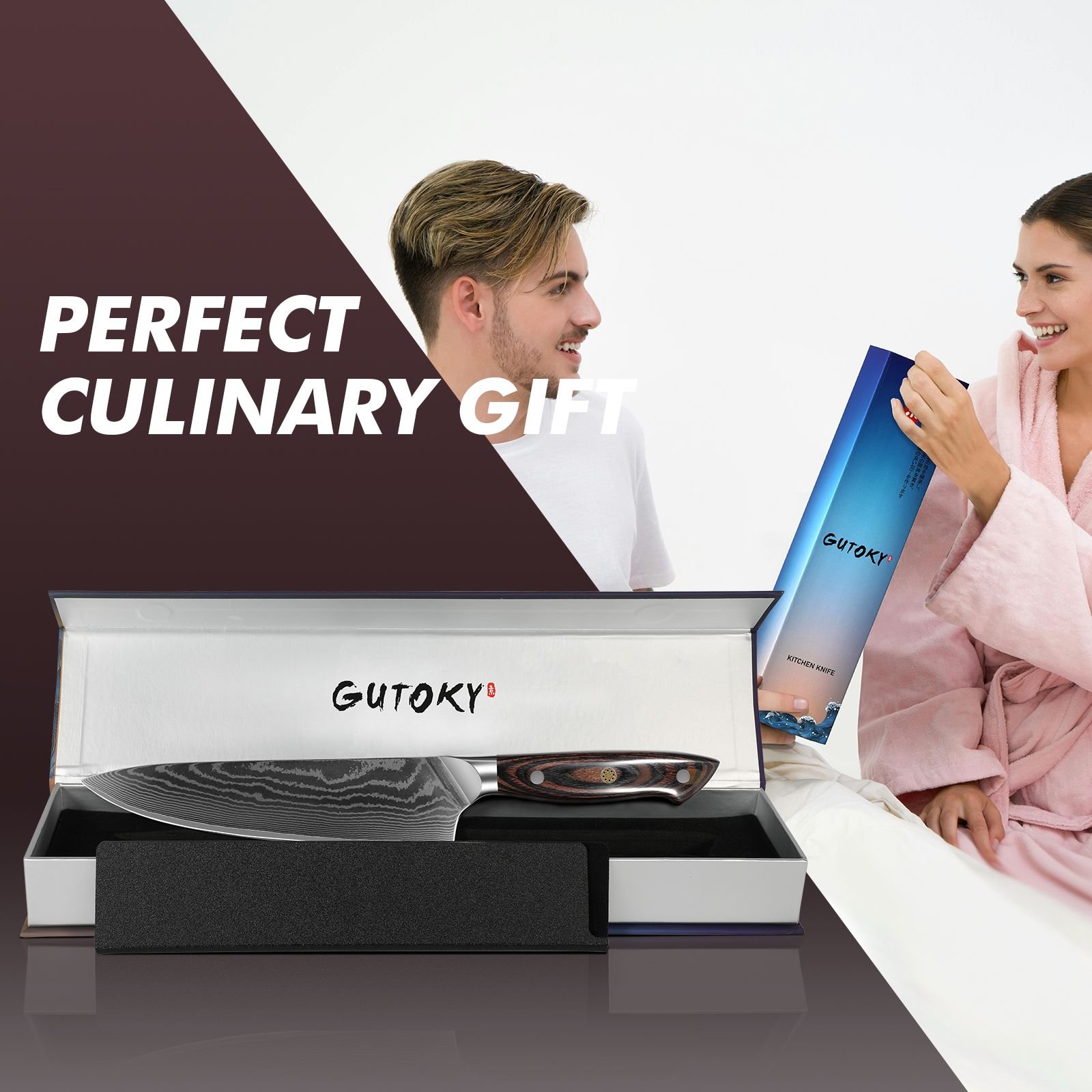 • GUARANTEE - 8 inch chef knife combines the finest materials and craftsmanship, offering premium quality without the premium price tag. Start your culinary journey with Gutoky today