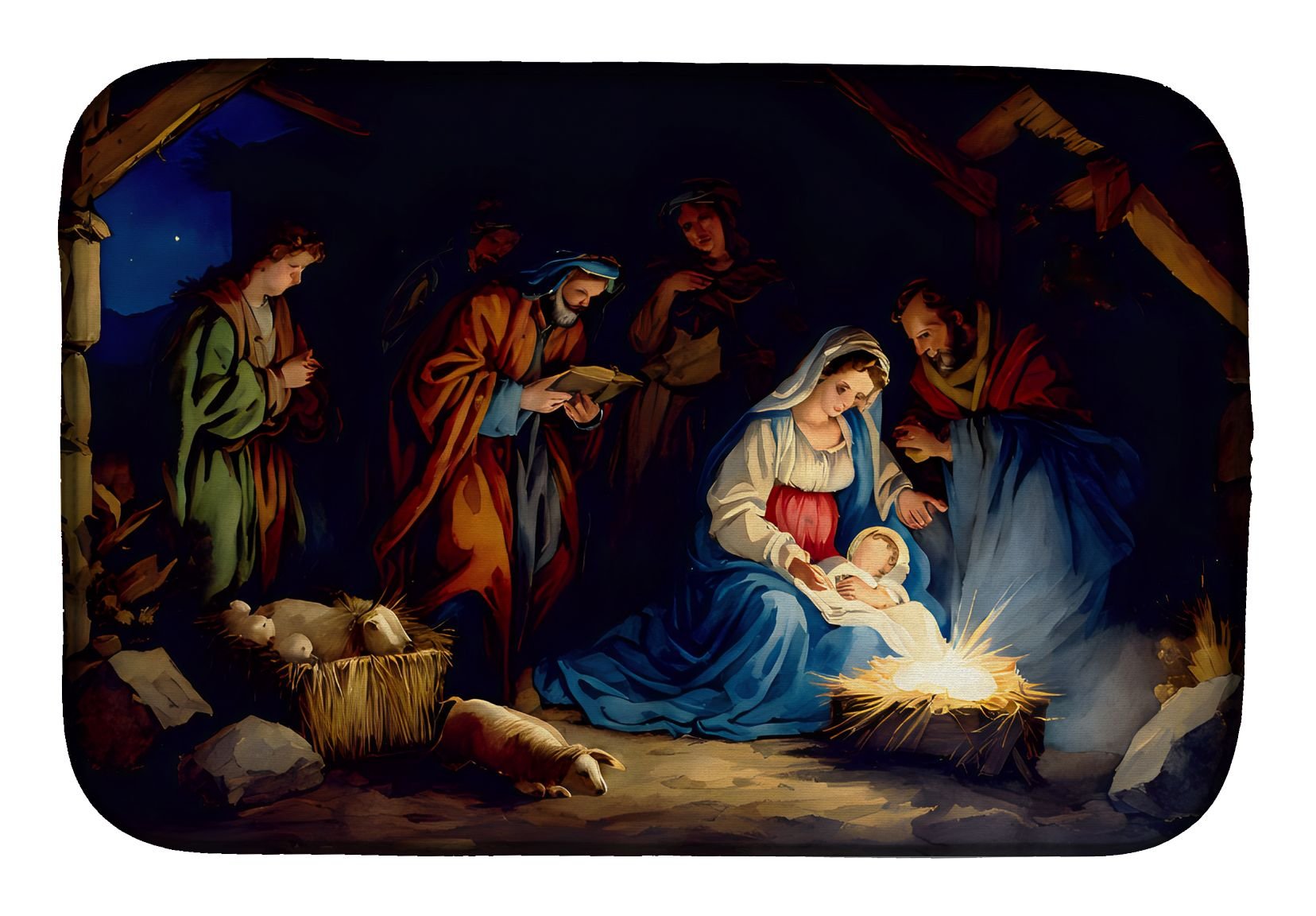 Home > Christmas Nativity Scene Dish Drying Mat Absorbent Dish Drying Mat Pad for Kitchen Counter Dish Drainer Mat for Countertop, 14 x 21", Multicolor