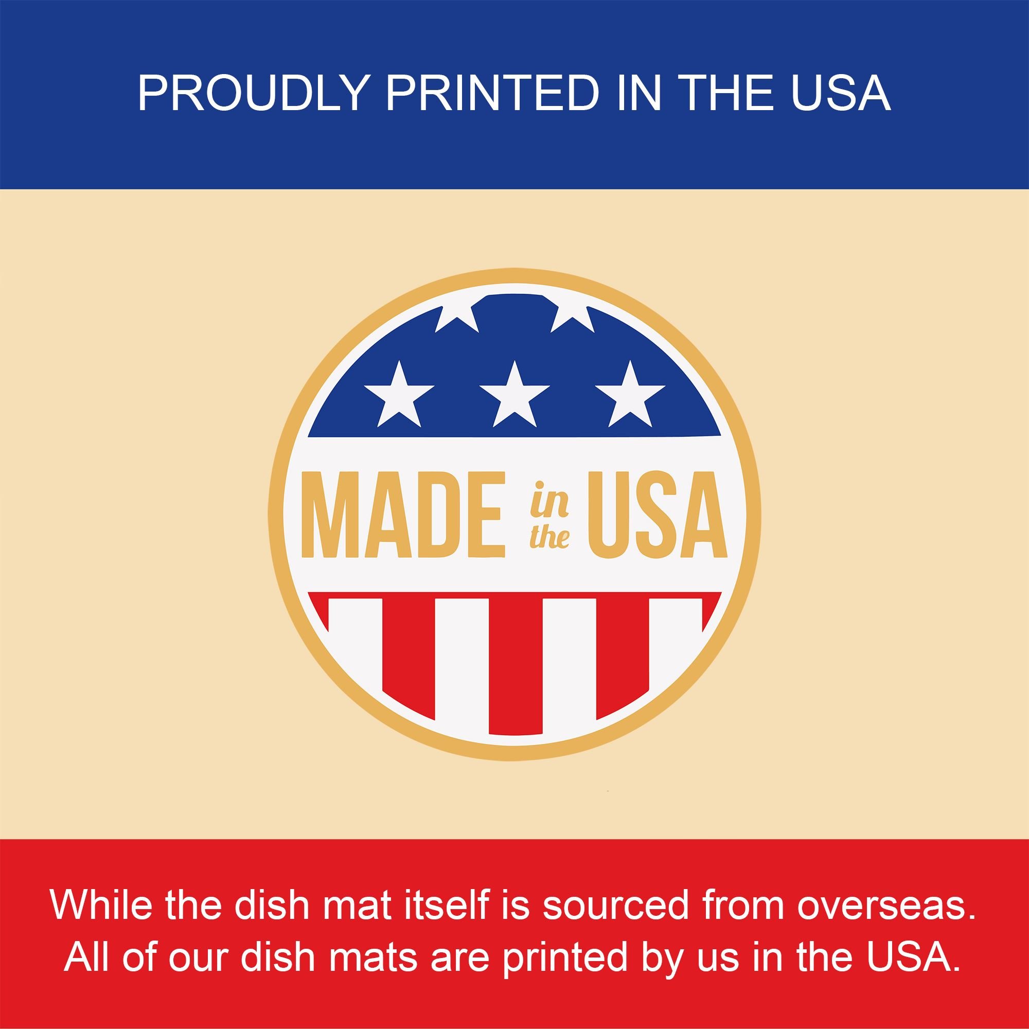 Celebrate Christmas with this Christmas Dish Drying Mat. Say goodbye to messy countertops and soggy dish towels with our innovative dish drying mat. Our high-quality dish drying pad is designed to keep your countertops dry while offering a stylish and efficient solution. Whether you're air drying dishes, glasses, stemware, silverware, pots, pans, bottles, or even fruits and vegetables, our dish mat is the perfect choice. The 14 inches x 22 inches size fits most counters and dish drying racks, and the non-slip design ensures stability. Made with water-absorbent polyester and a polyurethane foam insert, our dish drying mat is not only functional but also durable. It's machine washable and printed in the USA for long-lasting use. The beautiful artwork adds flair to your kitchen decor, making it a perfect housewarming gift or present for any occasion. Upgrade your kitchen experience with our absorbent and versatile dish drying mat.