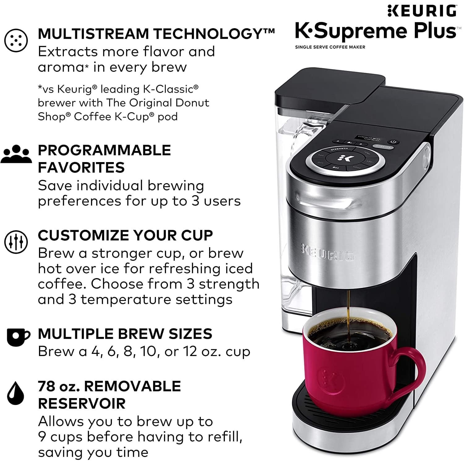 Elevate your coffee experience to delicious new heights with the Keurig K-Supreme Plus Single Serve coffee maker. The K-Supreme Plus coffee maker is the first series of Keurig brewer to feature MultiStream Technology; an innovative new way to more evenly saturate the coffee grounds in every K-Cup pod. This technique extracts full flavor and aroma; so you can enjoy an exceptionally flavorful experience every time you brew.