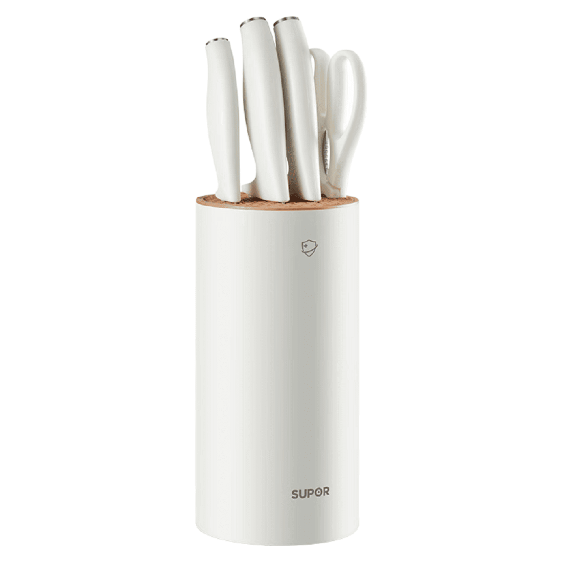 5.5.170mm slicing knife + 185mm fruit and vegetable knife + 90mm fruit knife + kitchen scissors + antibacterial knife seat.