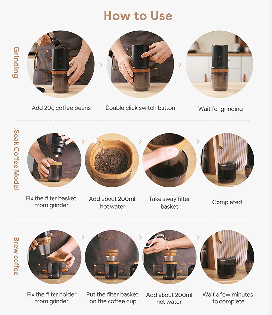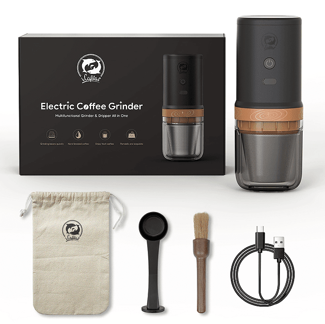 Portable design (car, office, home life, travel, outdoor camping) for freshly ground coffee