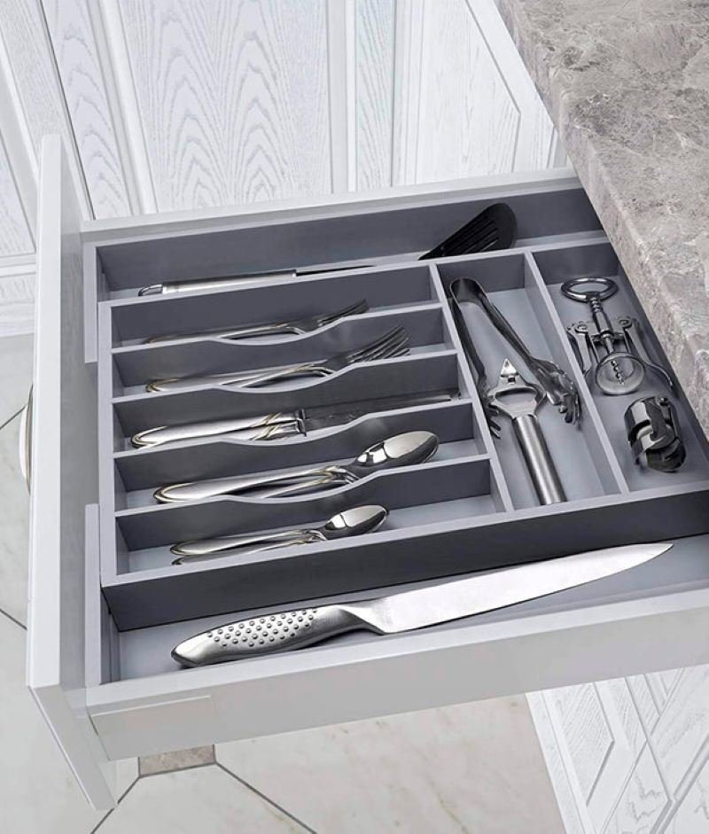 5.The various compartments provide optimal space for holding teaspoons, soup spoons, forks, knives, and various serving pieces, as well as cooking utensils and tools like tongs, can openers, and food thermometers.