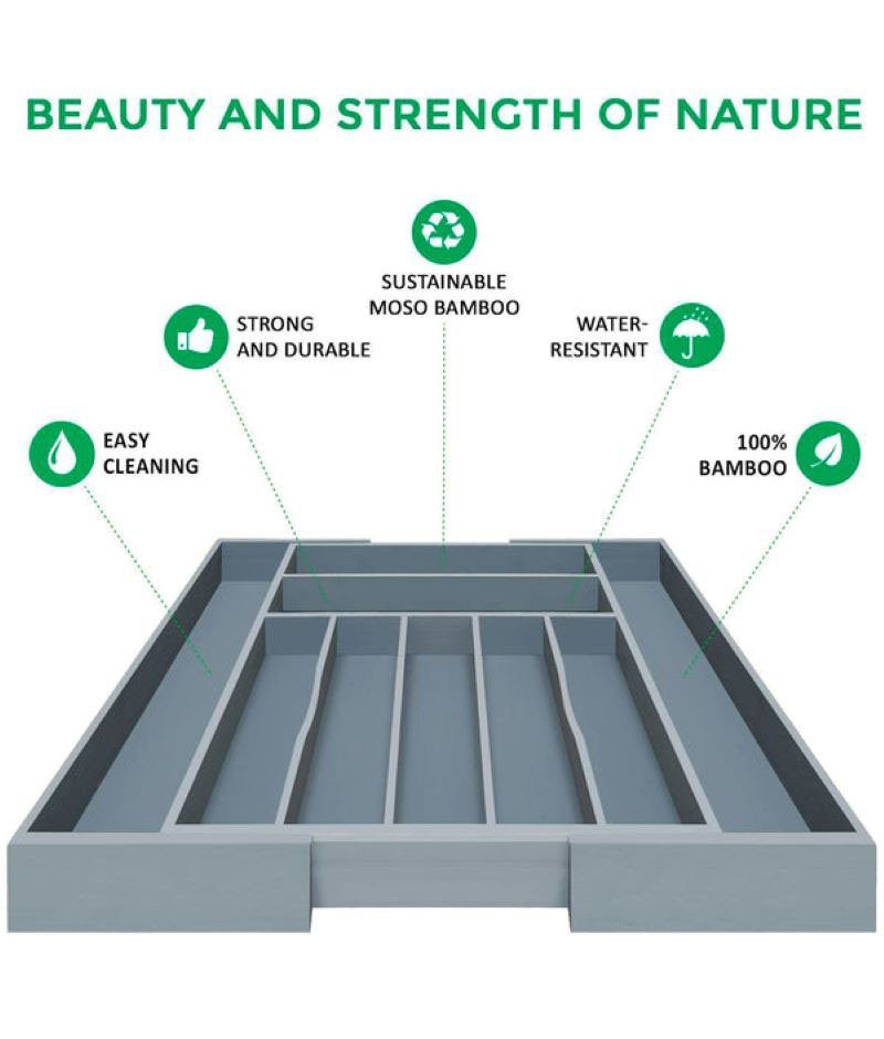 The drawer organizer promises to last a lifetime as it is made of all-natural bamboo – secure and durable. The drawer organizer is water-resistant and won’t absorb odors and stains! Excellent usability at hand!