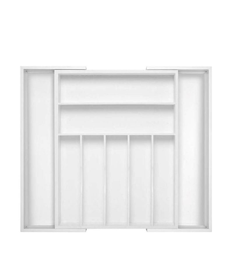 The drawer organizer is expendable; with 5 deep compartments; where the two helped organize cutlery and silverware and the bigger one handles ideally larger items.