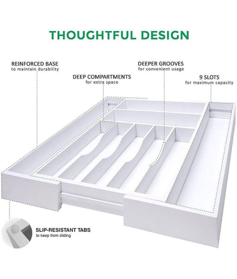 The drawer organizer promises to last a lifetime as it is made of all-natural bamboo – secure and durable. The drawer organizer is water-resistant and won’t absorb odors and stains! Excellent usability at hand!