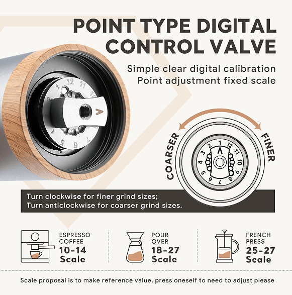 Grinding range: American / Italian / French / British / Turkish