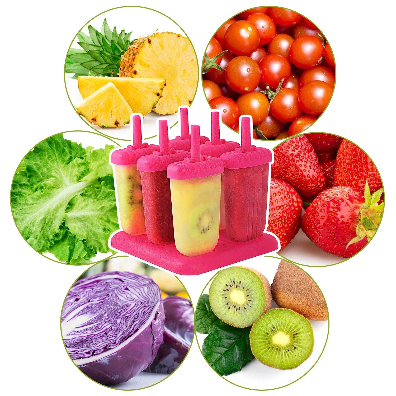 *Multiple Flavor*:With this 6-cavity ice popsicle molds,you can create unique tastes out of any ingredients that you and your kids like,such as fruit,juice,mint,yogurt,pudding,jams,jellies,purees,etc.