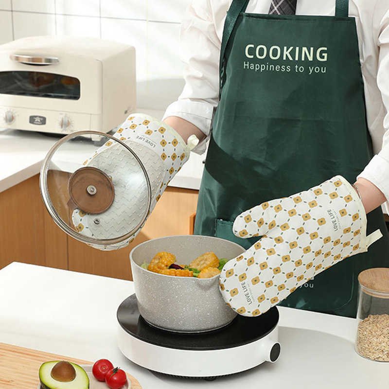 1.Oven Mitts: The outer layer of oven mitt is twill cloth and the inner layer is made of cotton. These oven mitts have good heat resistance to keep your hands from getting burned.