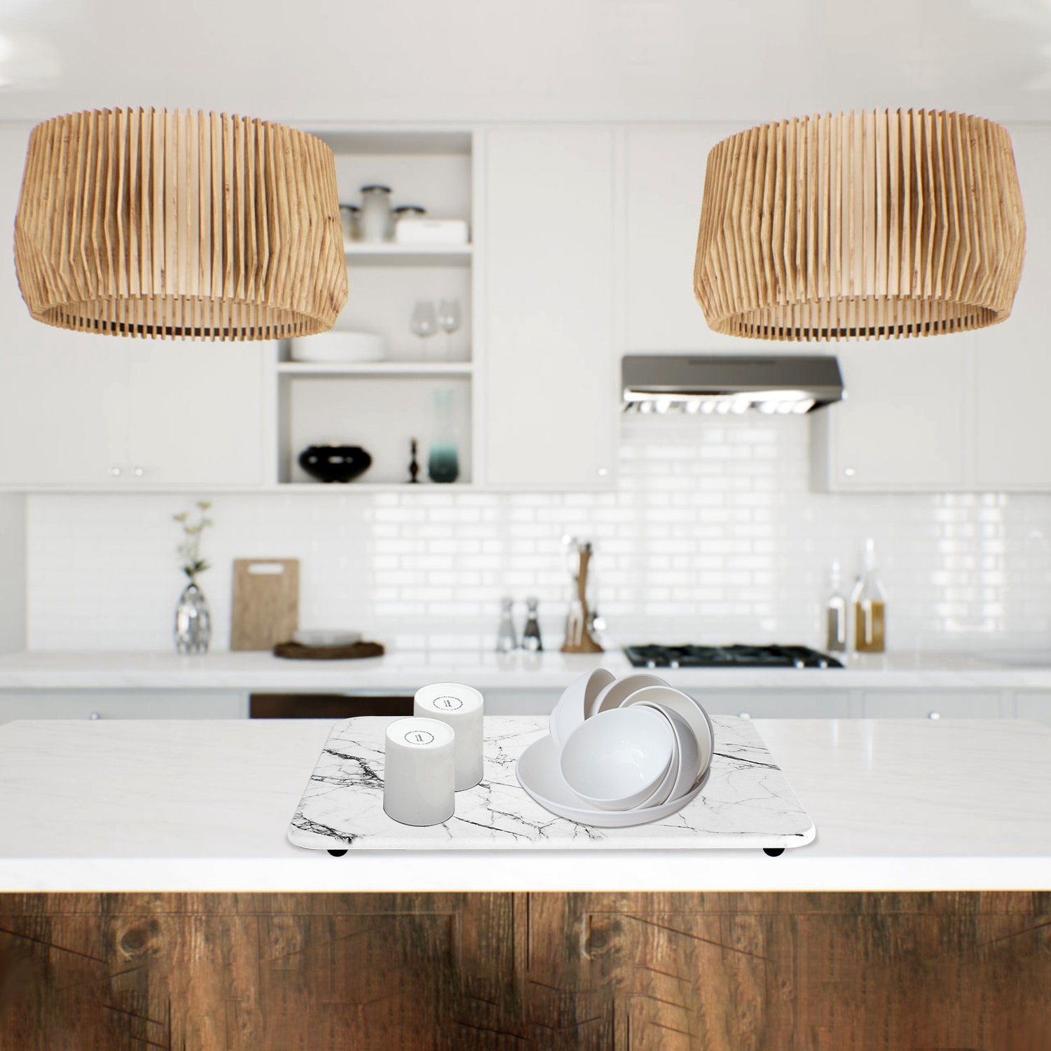 Constructed with premium diatomaceous earth with exceptional absorbency, our stone dish drying mat is able to absorb residual water on the tableware and quickly evaporate water from the surface in about 30S, keeping the sink area clean and tidy. Come with 2Pcs in package, non-slip and heat resistant up to 1000℃/1832℉, widely used for dish rack mat, stone bath mat, hot pot pad, pet feeding mat etc.. Feature marble texture and 11.81x15.75in large size, suitable for most kitchen ware and tableware. Easy to clean. An considerate gift for wife, girlfriend and mother!