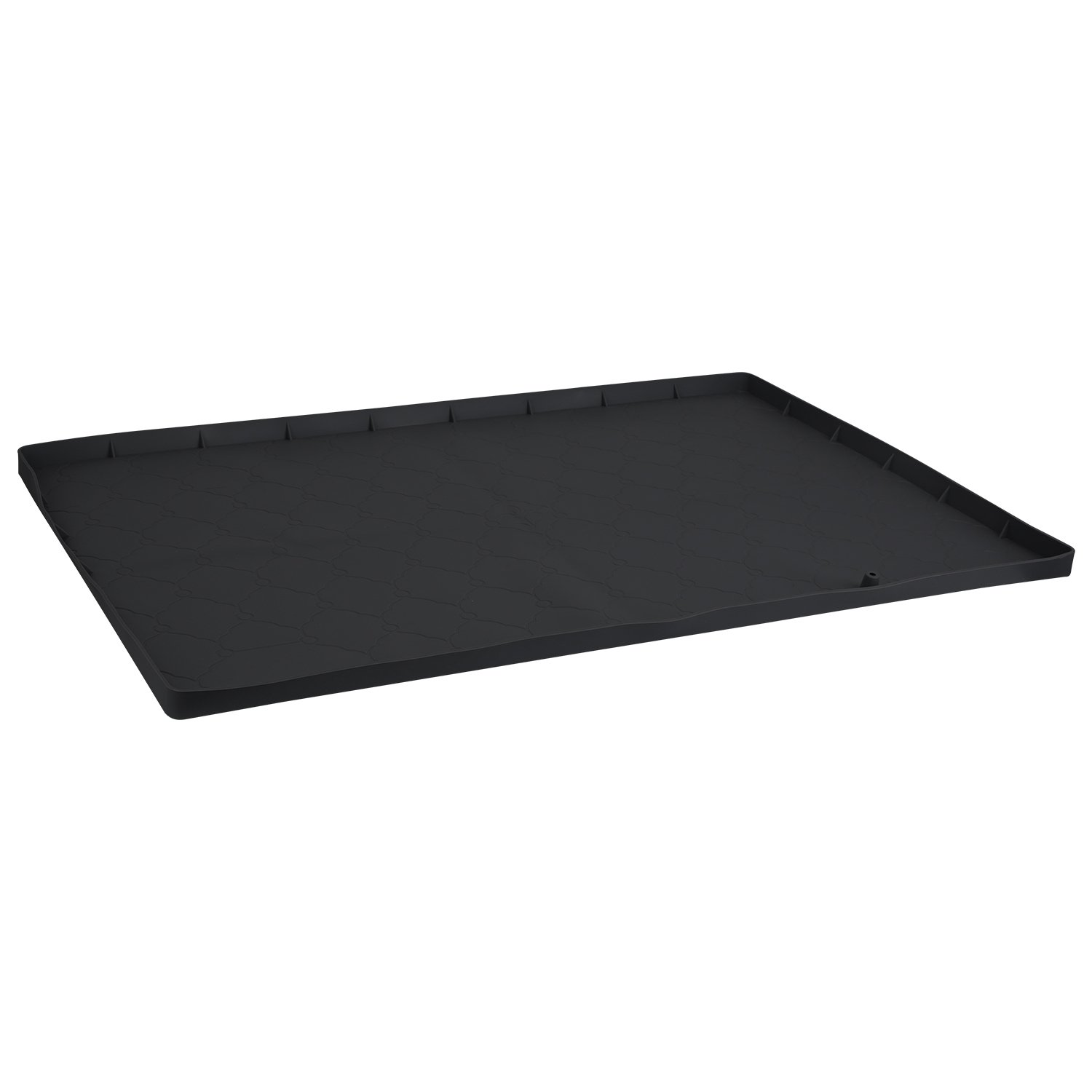 Made of environmentally friendly silicone, our under sink mat provides a secure and slip-free area for you to place your cleaning supplies or kitchen tools without slipping or sliding. Also, water or spills will be effectively contained, reducing the risk of damage to your cabinets. Holds up to 3 gallons of liquid and fits for standard 36-inch kitchen and bathroom cabinets. Also comes with a drain hole to allow for quick and efficient drainage. Easy to clean.Also suitable for pet feeding mats, access door mats, tool mats, craft mats or any other occasions to avoid mess and spills.