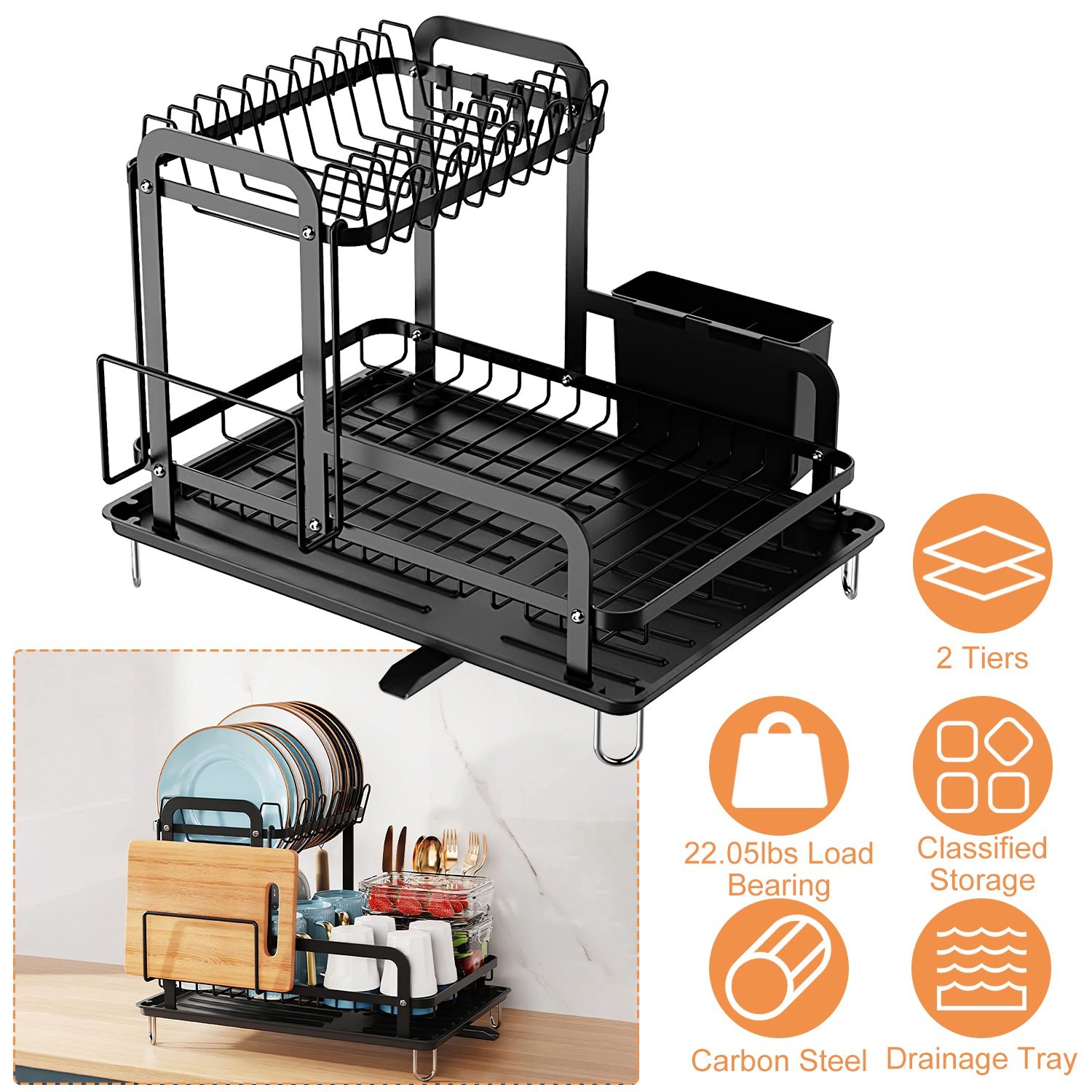 Home > 2-Tier Dish Drying Rack for Kitchen Counter Space Saving Rustproof Dish Rack with Drainboard Detachable Kitchen Drainer Organizer Set with Utensil Hol