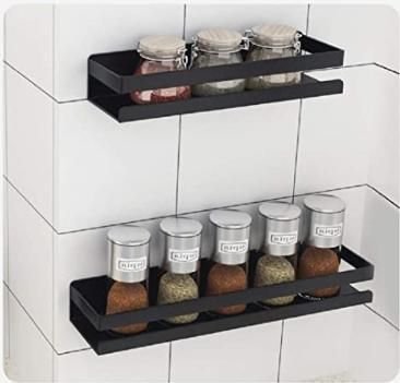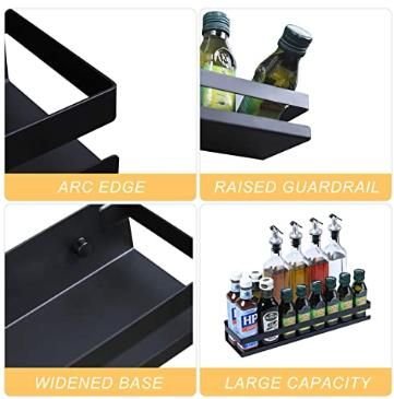 [2 WAYS TO INSTALL]: This spice rack organizer is very easy to install. You may choose from 2 options whether drilled to wall with screws or with the use of self-adhesive. You can choose the suitable installation solution according to the wall surface; Self-adhesive for smooth surface; drilled with screws for rough surfaces. It can also be disassembled and reused.