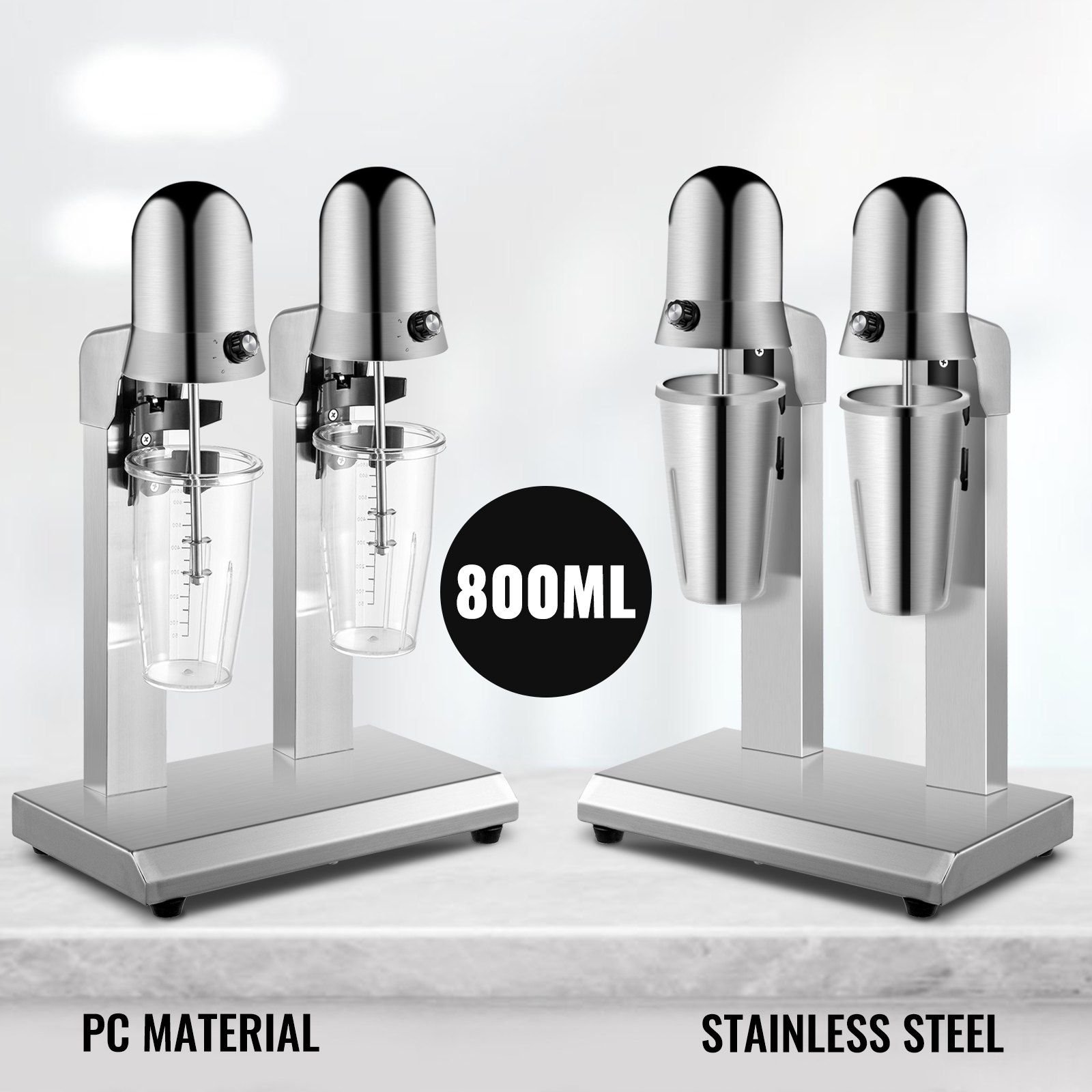 Constructed with heavy-duty stainless steel, our milkshake machine includes 2 food-grade stirring shafts to help you get the job done effectively and quickly. This drink mixer comes with four large-volume 800 ml cups, so you can start mixing drinks right away. All the outstanding features make it suitable for making milkshakes, fruit smoothies, milk tea, milk foam mixing, etc., which is widely applied in coffee shops, bars, tea shops, restaurants, and so on.